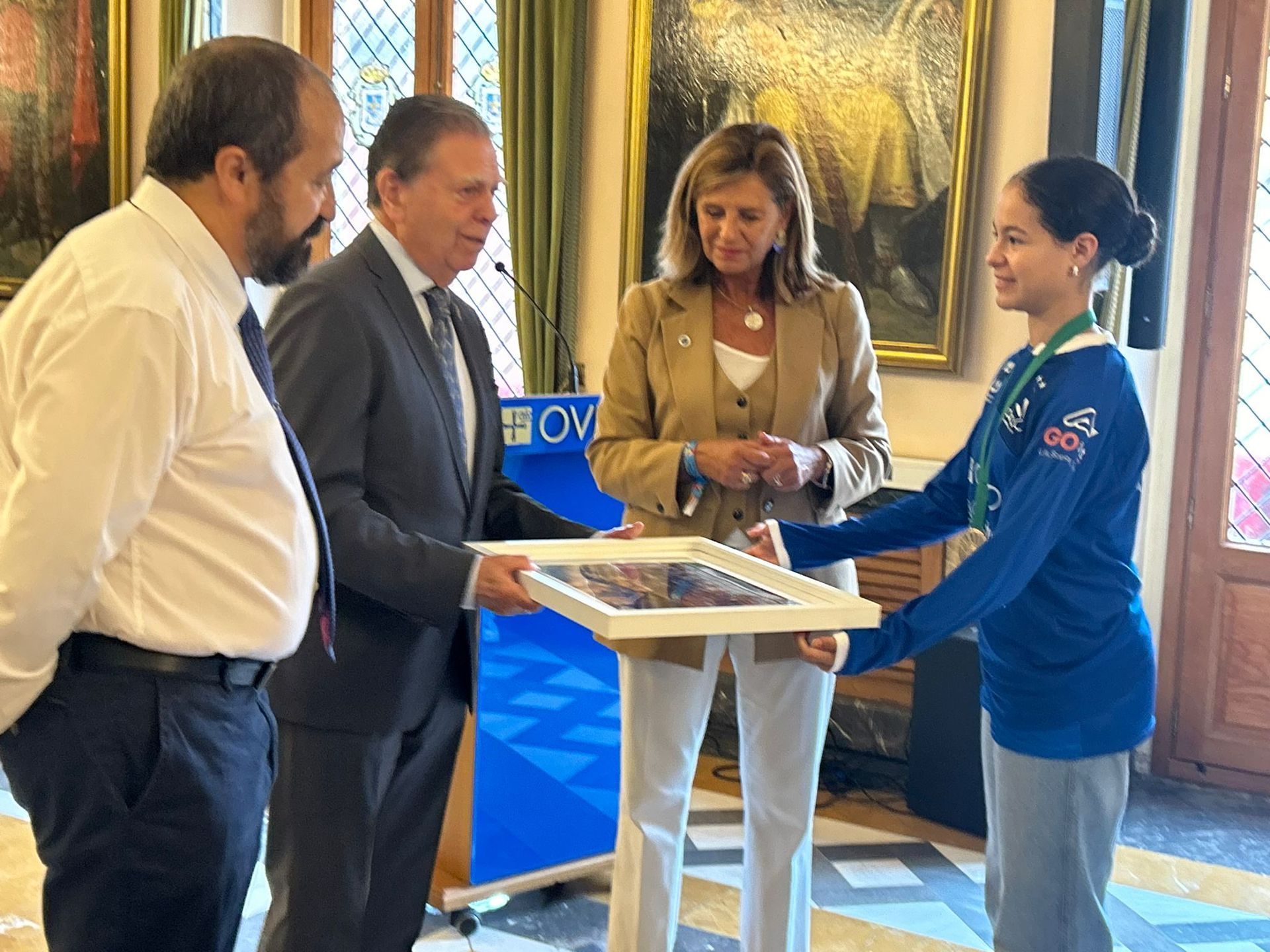 Canteli ha agradecido a los integrantes del club su visita con la copa de campeones de Liga, y les ha felicitado al club por su segundo título liguero. Además, les ha animado a seguir trabajando para continuar dando éxitos al deporte ovetense.