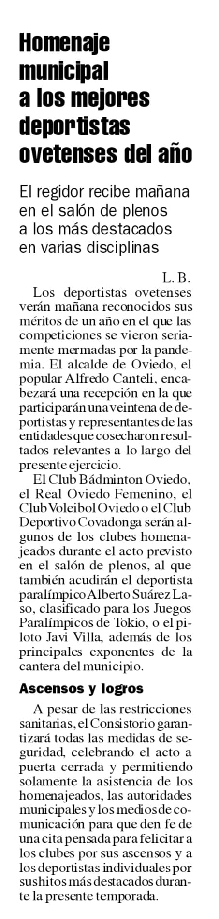El lunes 16 de septiembre, el alcalde Alfredo Canteli recibió en el Consistorio al equipo femenino del Bádminton Oviedo, tras lograr su cuarto título en la Copa Iberdrola, la competición femenina de equipos más importante de España.