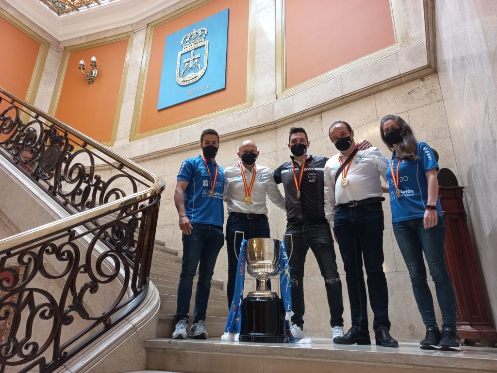 Al encuentro, en el que también ha estado presente la concejal de Deportes del Ayuntamiento de Oviedo, Concepción Méndez, han asistido el presidente de la entidad, Nicolás García; el directivo Ángel Rodríguez; el director técnico del club, César González; la entrenadora Isela Miranda; y el capitán del primer equipo, Alberto Zapico. Los miembros del club han hecho entrega al alcalde de la medalla de campeones de Liga.