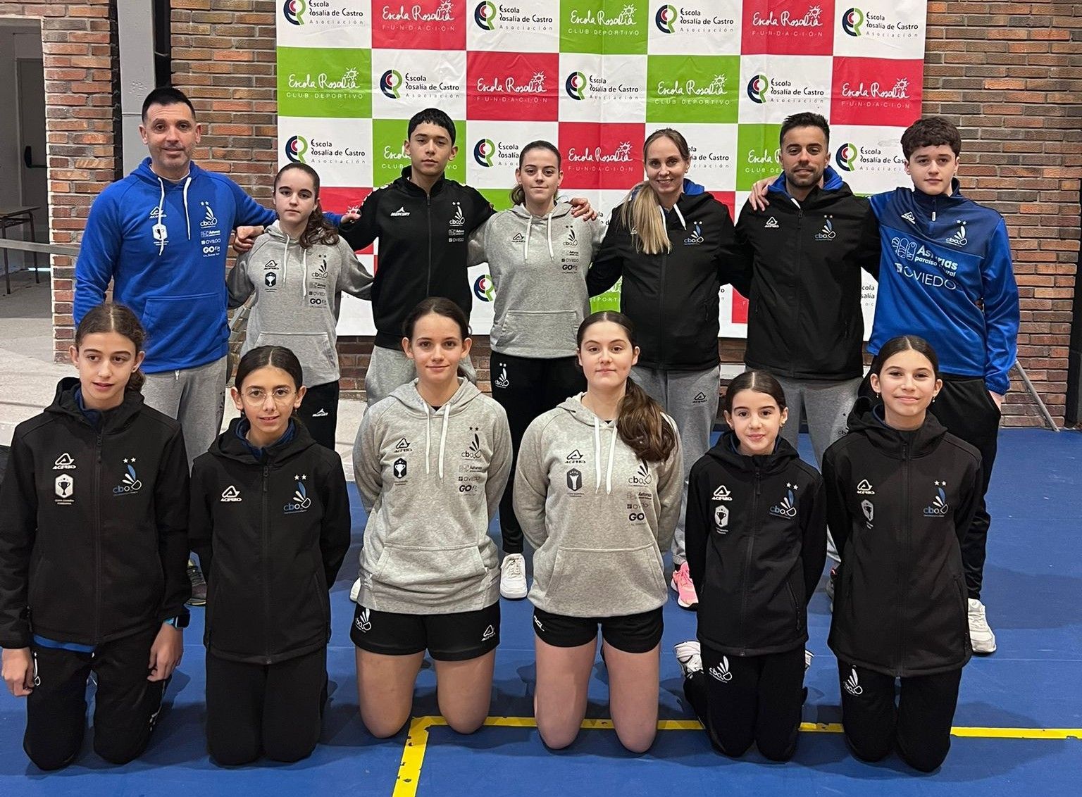Los deportistas del Bádminton Oviedo compitieron este fin de semana en el Máster Sub 13 y Sub 17 realizado en Nigrán. Las actuaciones más destacadas fueron en Sub 17, donde Mark Kravchyshyn y Deva García fueron campeones en mixtos. Además, Analía Villabona y Daniela Márques lograron la tercera posición en dobles femeninos, y Alma Álvarez fue tercera en individual. El equipo estuvo acompañado por los entrenadores César González, Alberto Zapico y Kristina Sotomayor.