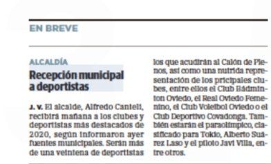 El lunes 16 de septiembre, el alcalde Alfredo Canteli recibió en el Consistorio al equipo femenino del Bádminton Oviedo, tras lograr su cuarto título en la Copa Iberdrola, la competición femenina de equipos más importante de España.