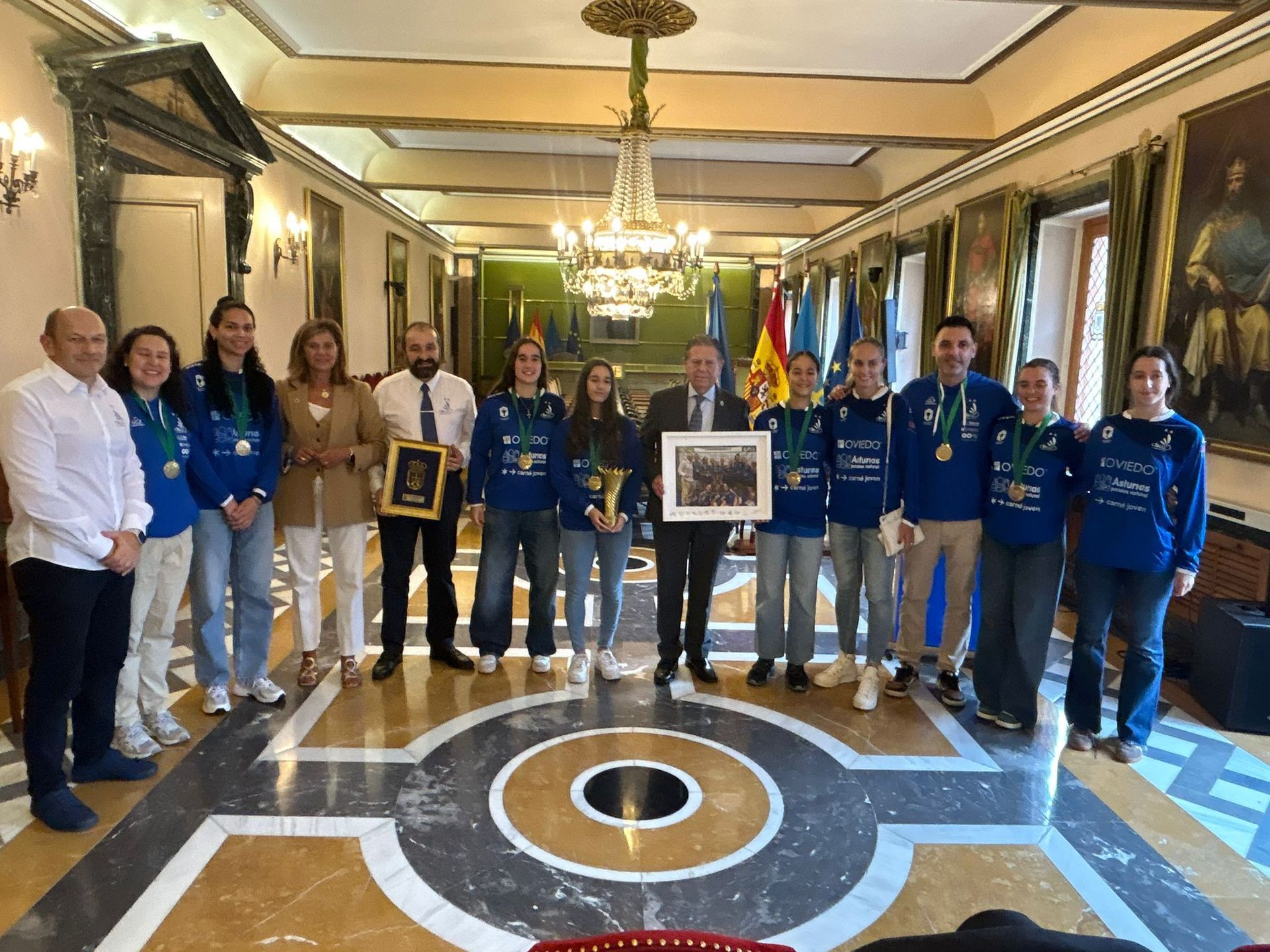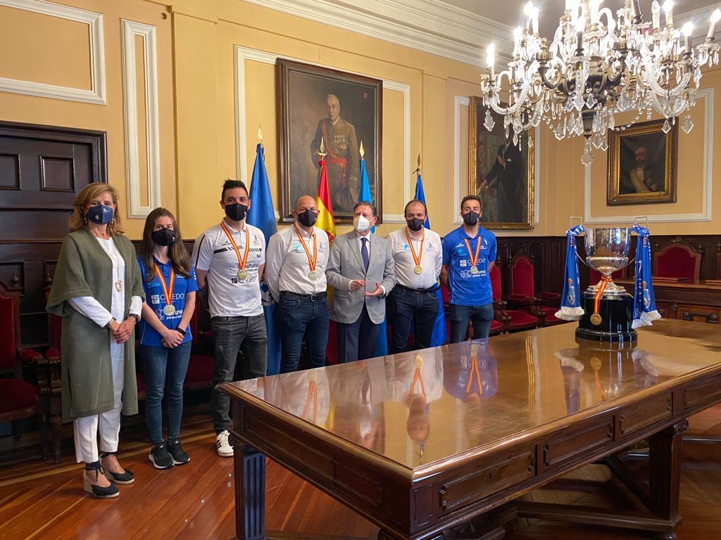 Al encuentro, en el que también ha estado presente la concejal de Deportes del Ayuntamiento de Oviedo, Concepción Méndez, han asistido el presidente de la entidad, Nicolás García; el directivo Ángel Rodríguez; el director técnico del club, César González; la entrenadora Isela Miranda; y el capitán del primer equipo, Alberto Zapico. Los miembros del club han hecho entrega al alcalde de la medalla de campeones de Liga.